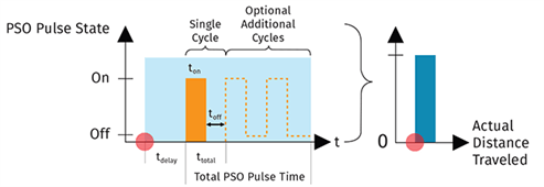 - At each PSO firing event, the user specified PSO output pulse train is generated. The PSO output pulse train becomes the PSO output based on the on/off sequence on the drive hardware.