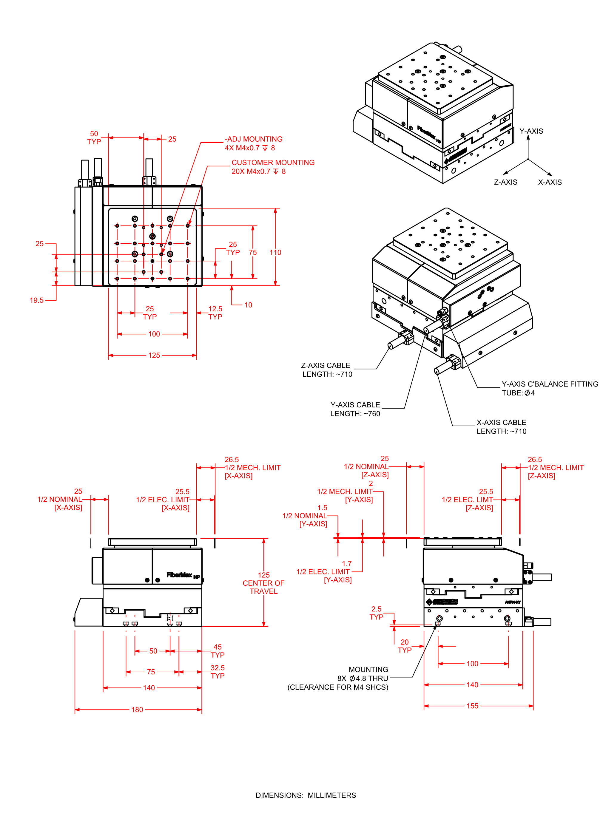 | Maximum Speed(4) | X: 400 mm/s Y: 75 mm/s Z: 200 mm/s |