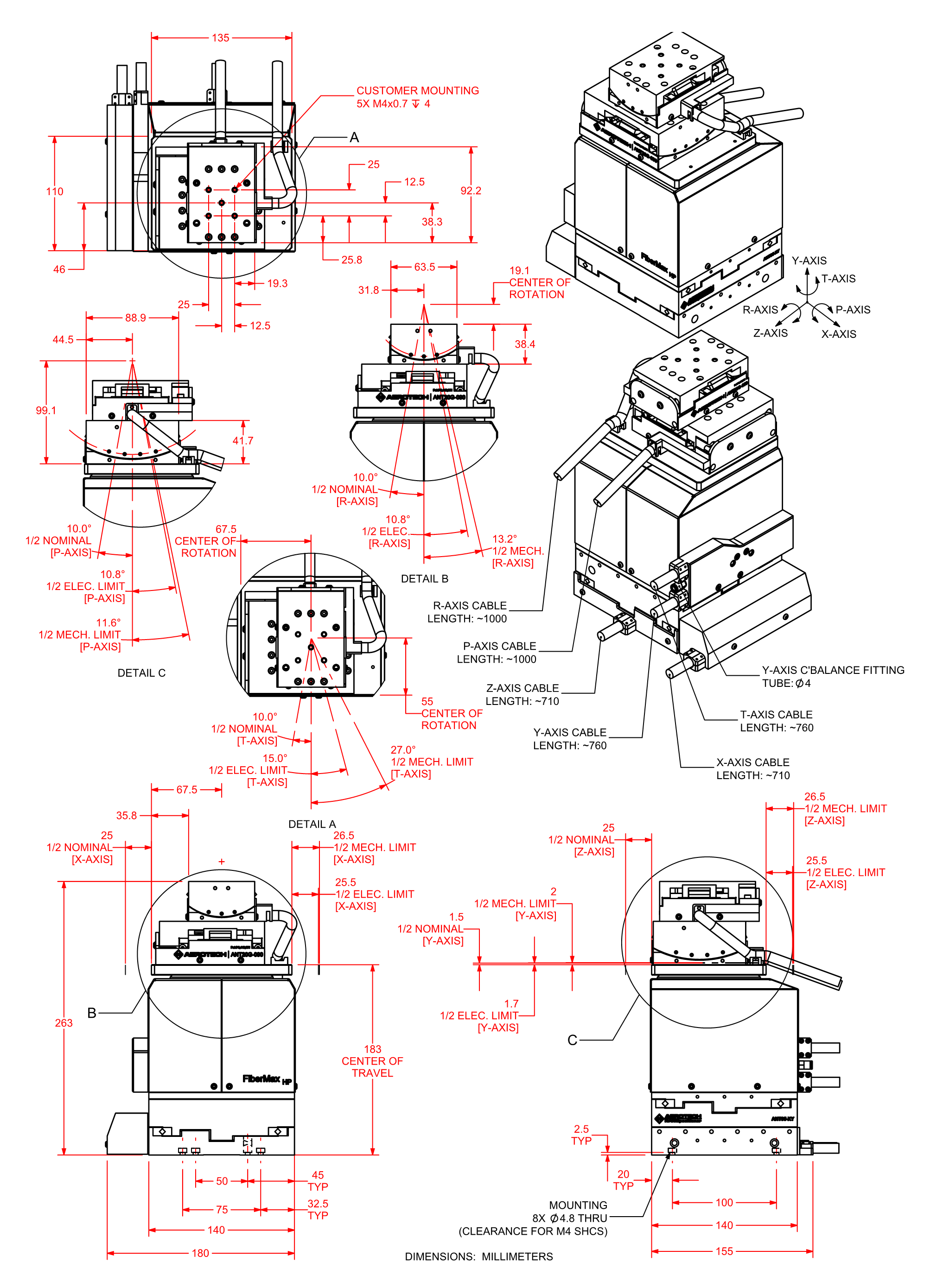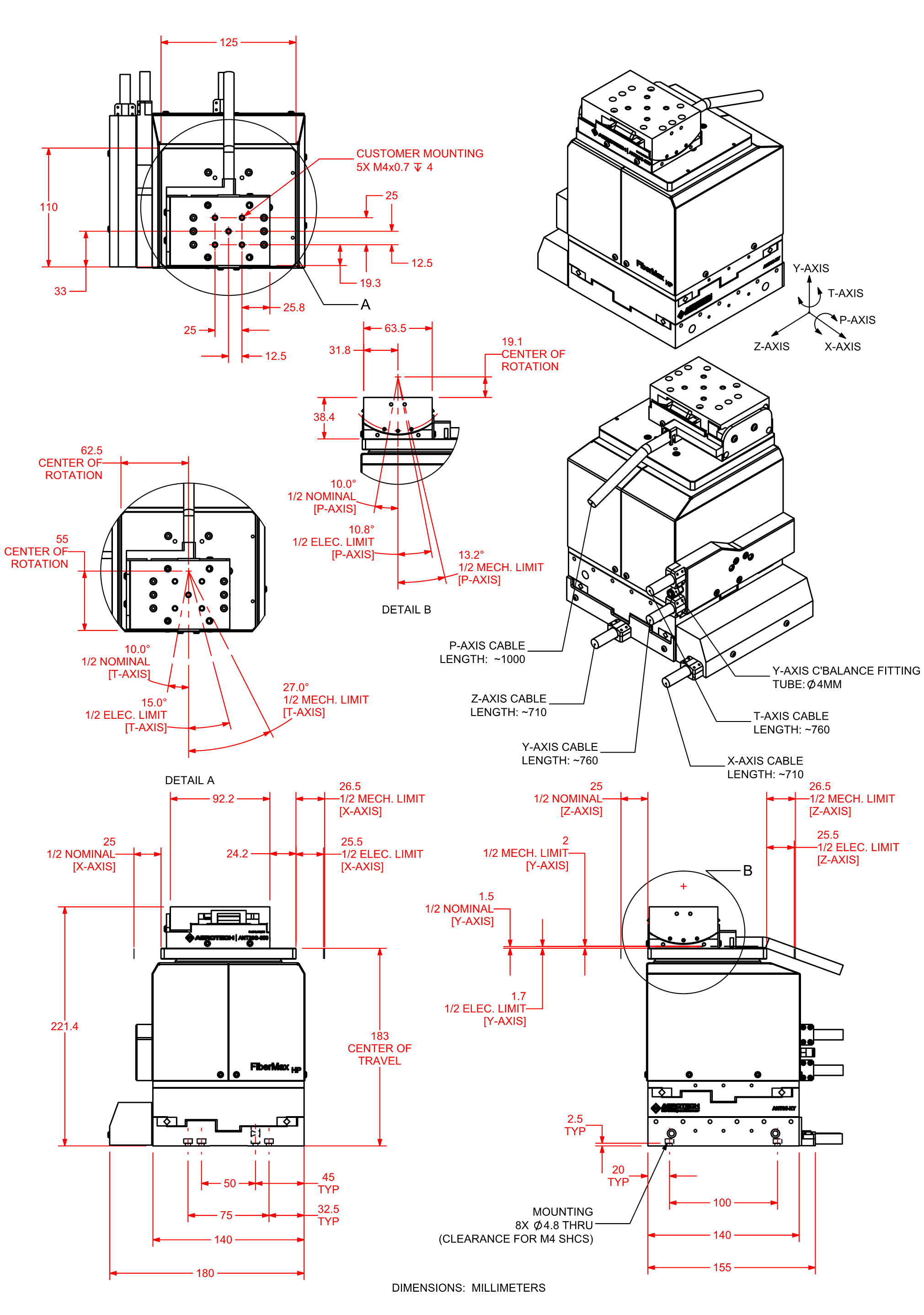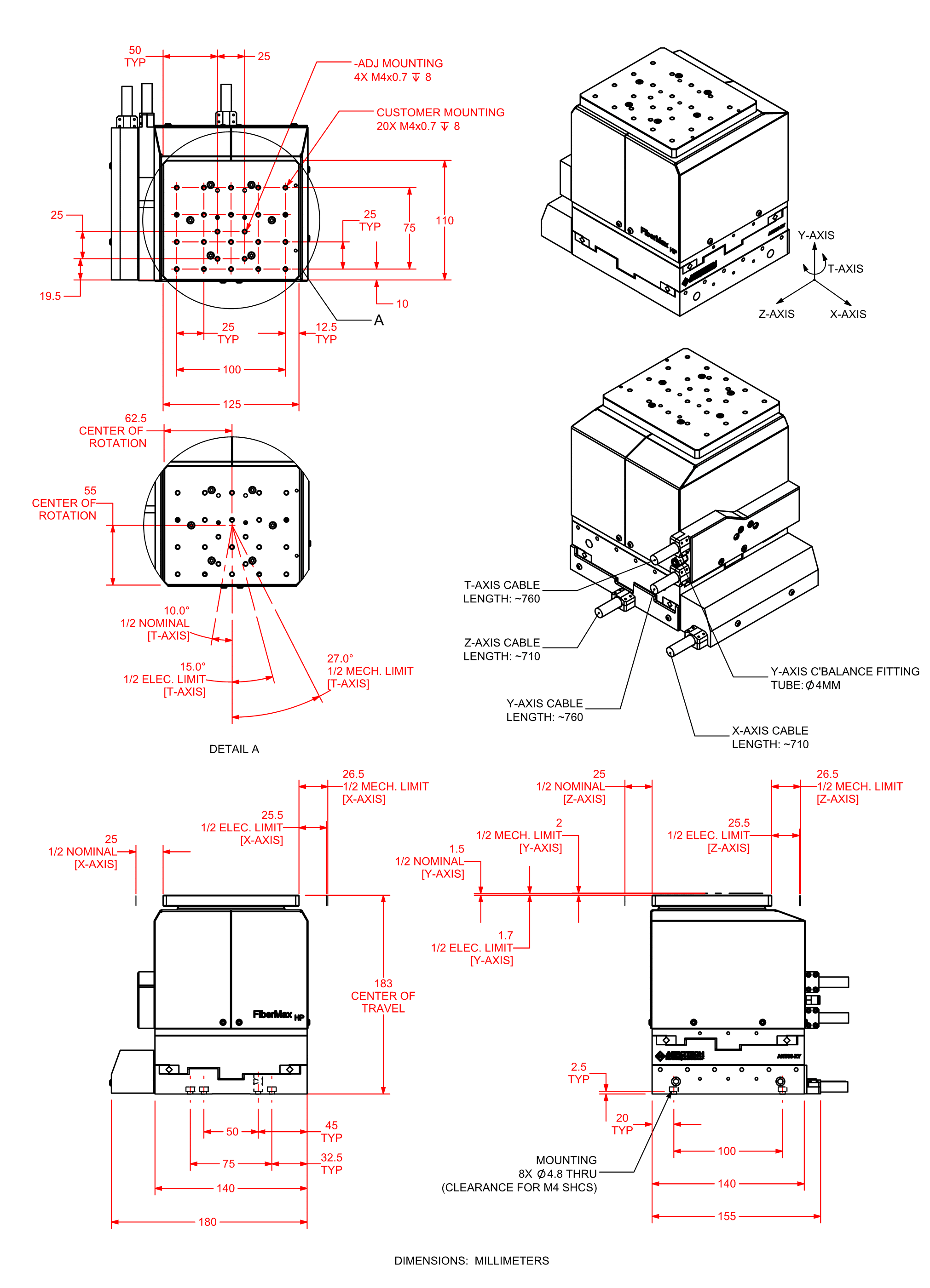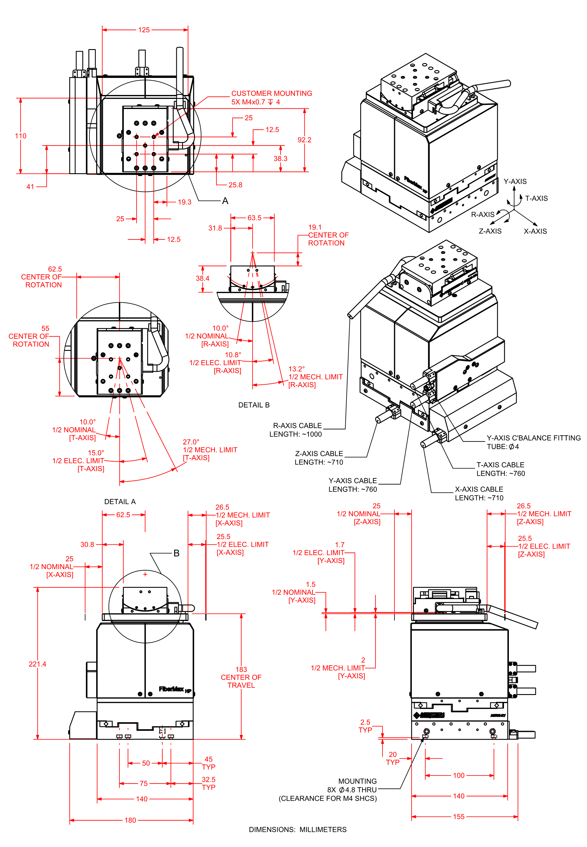 | Maximum Speed(4) | X: 400 mm/s Y: 75 mm/s Z: 200 mm/s T: 120 deg/s R: 150 deg/s |