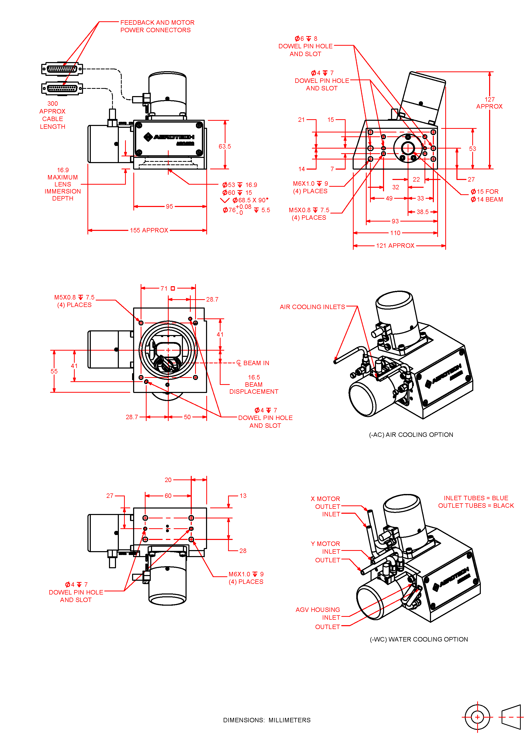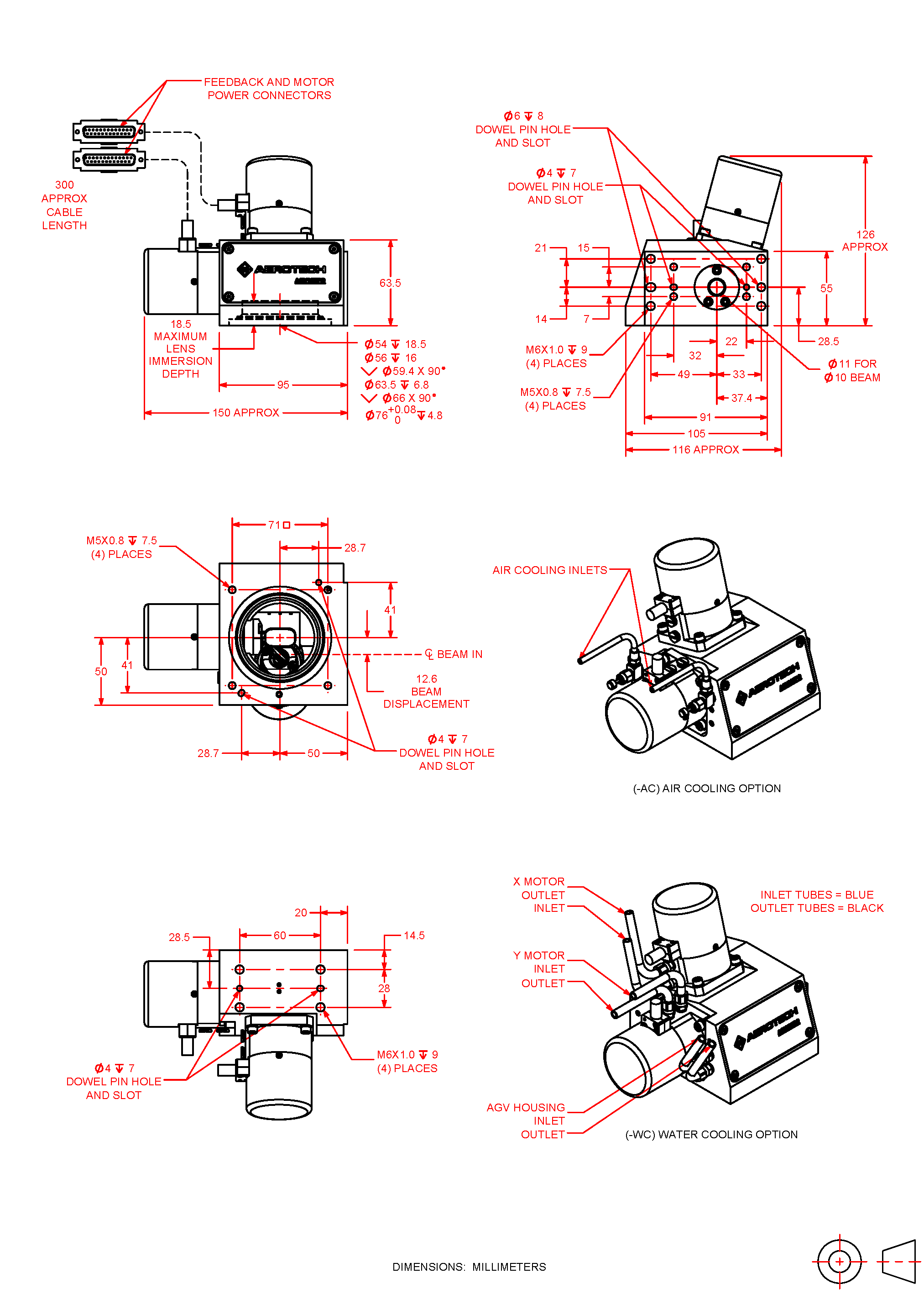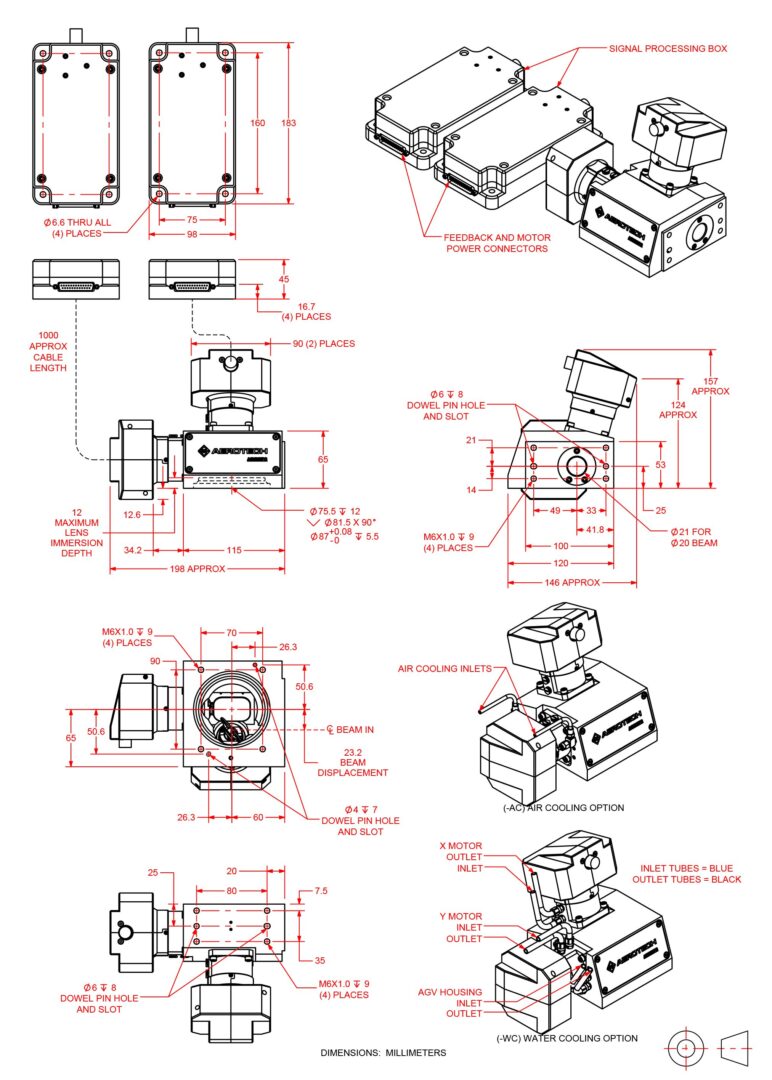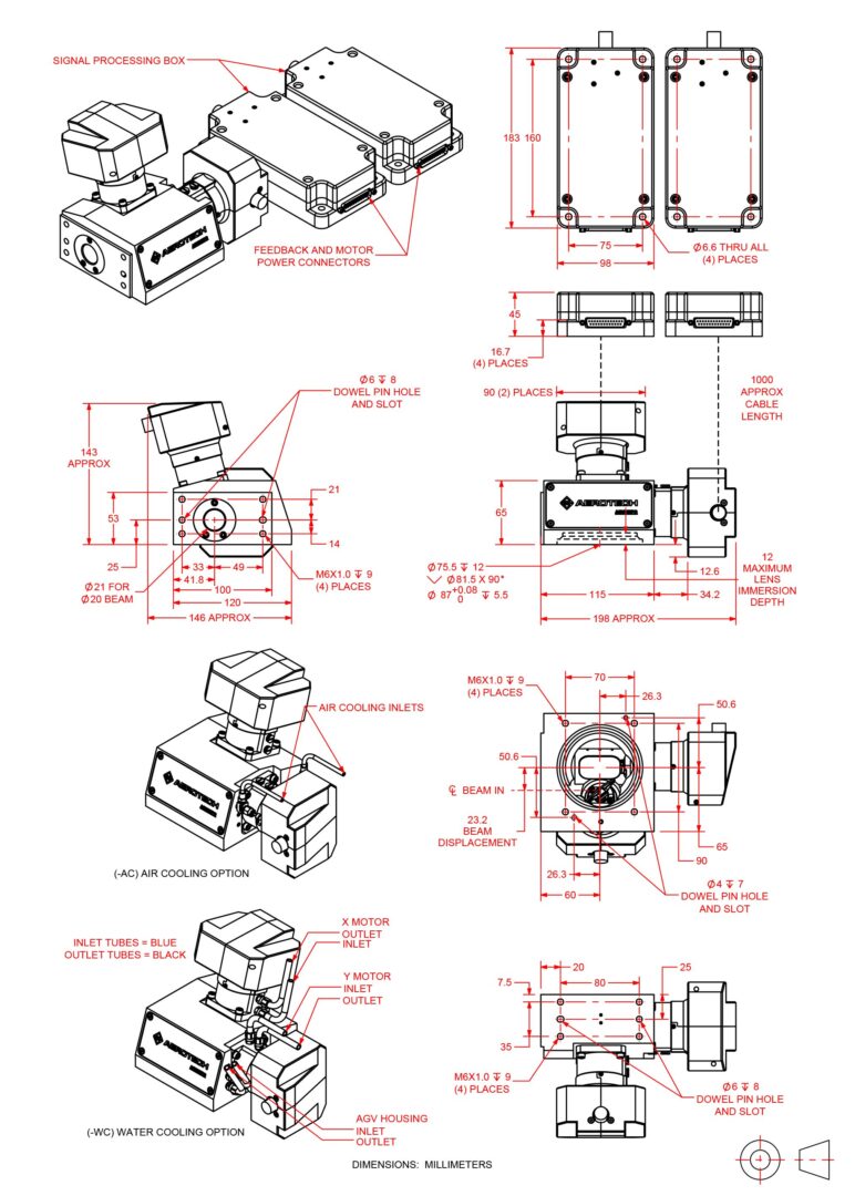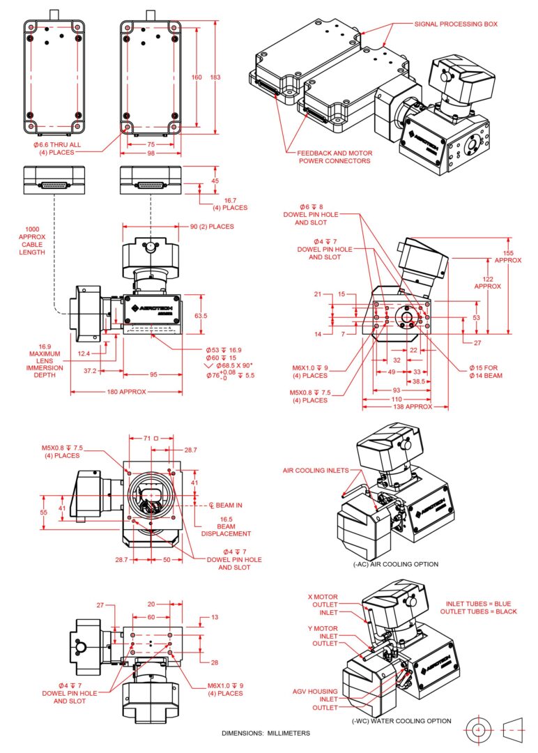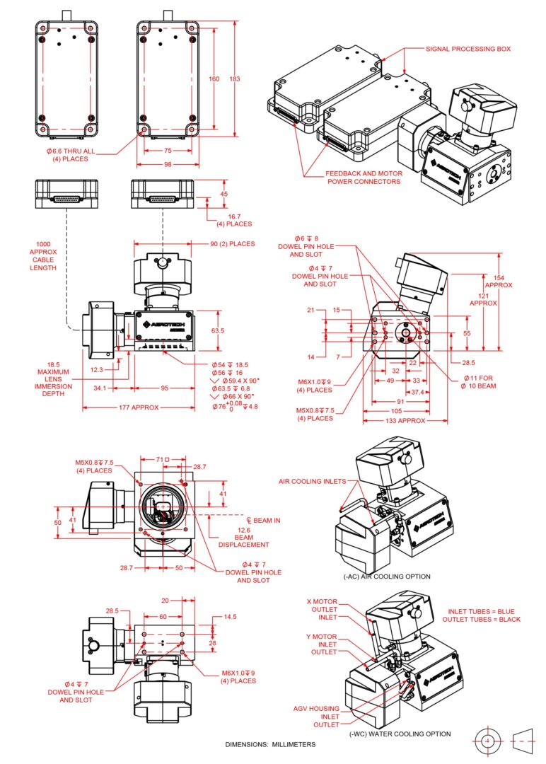 AGV-XPO is available with multiple aperture sizes and a broad selection of optical coatings and focusing optics to support a diverse range of lasers and applications. We can also supply customized optics and optical mounting features upon request. Additionally, AGV-XPO can be configured with air-cooled mirrors, water-cooled motors or both. These active cooling features help to preserve laser spot placement accuracy in the presence of thermal disturbances caused by the laser and by aggressive motion profiles. Finally, all Aerotech laser scan heads can be effortlessly coordinated with other types of motion axes (servo, stepper, piezo, hexapod, etc.) using an Aerotech controller, resulting in simplified system integration and optimal ease of use.