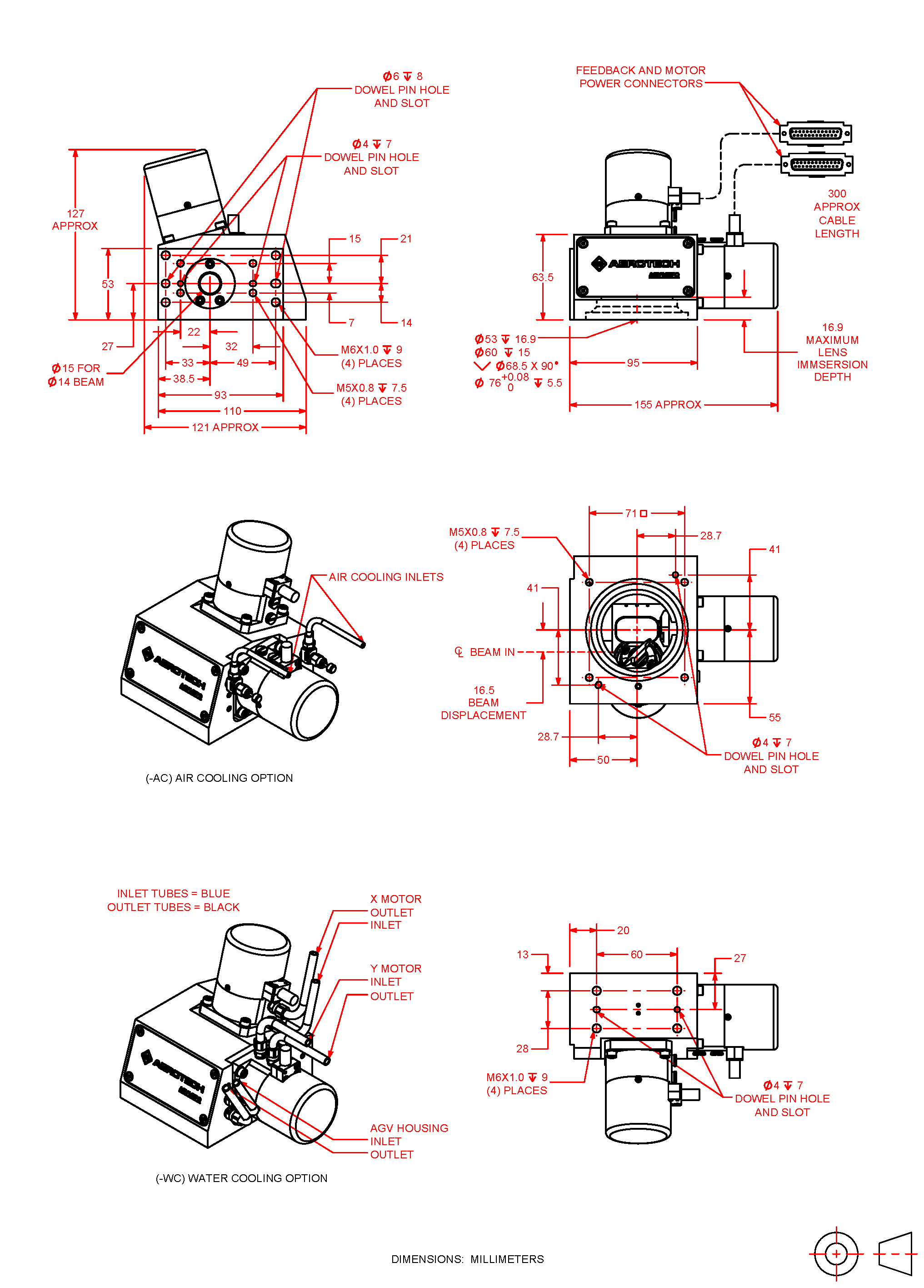 A high-resolution feedback device is paramount to achieving dynamic accuracy at high speeds. AGV-XPO is available in two feedback configurations to suit a diverse range of application requirements. For applications that demand the highest levels of acceleration and have short-to-medium effective focal lengths, a high-resolution position encoder with digitally interpolated output signals and a low-inertia scale (-E1 option) is preferred. For high-dynamic applications that require the finest part-path accuracy and/or utilize long effective focal lengths, an ultra high-resolution encoder with a feedback resolution finer than 0.0002 µrad (-E2 option) is available.