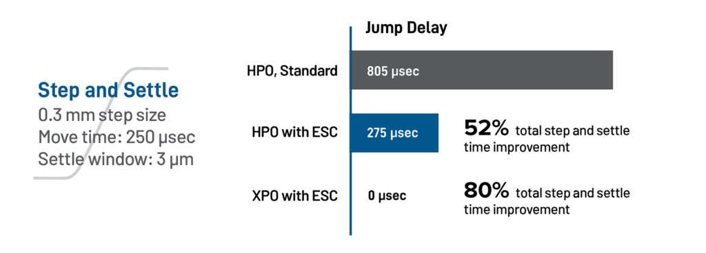 - Dramatically reducing or eliminating settle times for step and settle motion