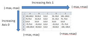When creating the CSV file, be aware that the order of the correction elements in the CSV file differs from the Grid View; Axis 0 positions increase top to bottom and Axis 1 positions increase left to right (Figure 9).