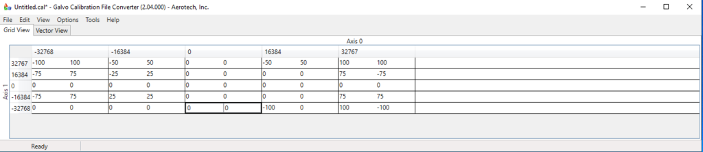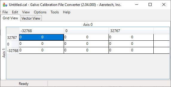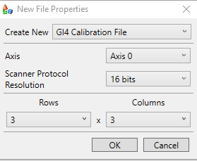 Tables should be created with an odd number of rows and columns. This is done so that there are correction values that pass through the origin (X=0, Y=0) of the scanner. To create a new file, select “New” from the “File” menu.