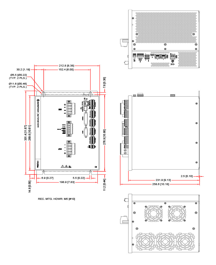 The features you need most come standard with the Automation1 iXC6e, including safe torque off (STO), a 67.1 MB data array (stores more than 16 million 32-bit elements), digital and analog I/O, Position Synchronized Output (PSO), dedicated home and end-of-travel limit inputs and an enhanced current sense device. The drive also includes internal bus voltage monitoring, over-voltage protection, an integral 300W shunt resistor and integral cooling fans.