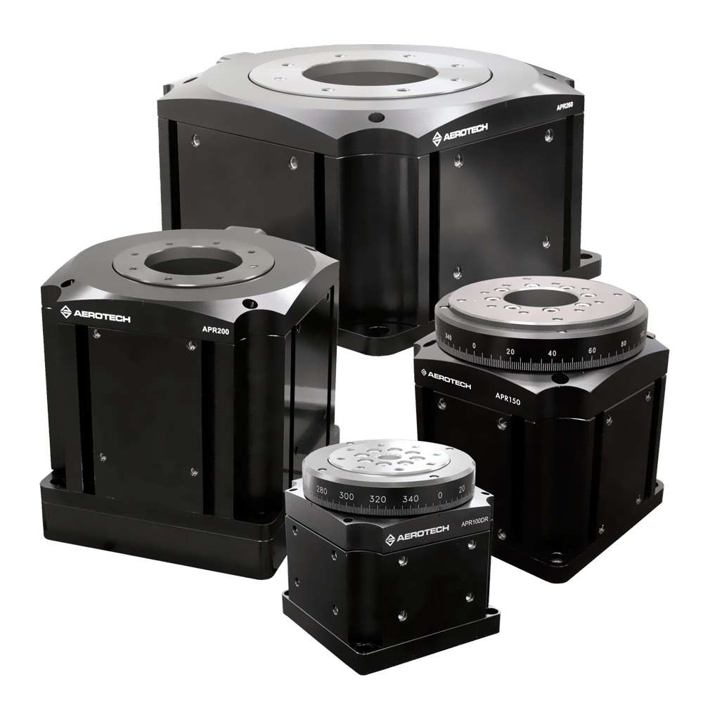Our APR stages are the highest performing and most versatile direct-drive, mechanical-bearing stages available. With nine models offering a variety of options for load capacity, torque and dimensional requirements, the APR stage family provides convenient design and integration flexibility. APR stages achieve exceptionally high repeatability, geometric performance and dynamics through a combination of ultra-precise components, cogless direct-drive motors, high-resolution encoder feedback and superior craftsmanship.