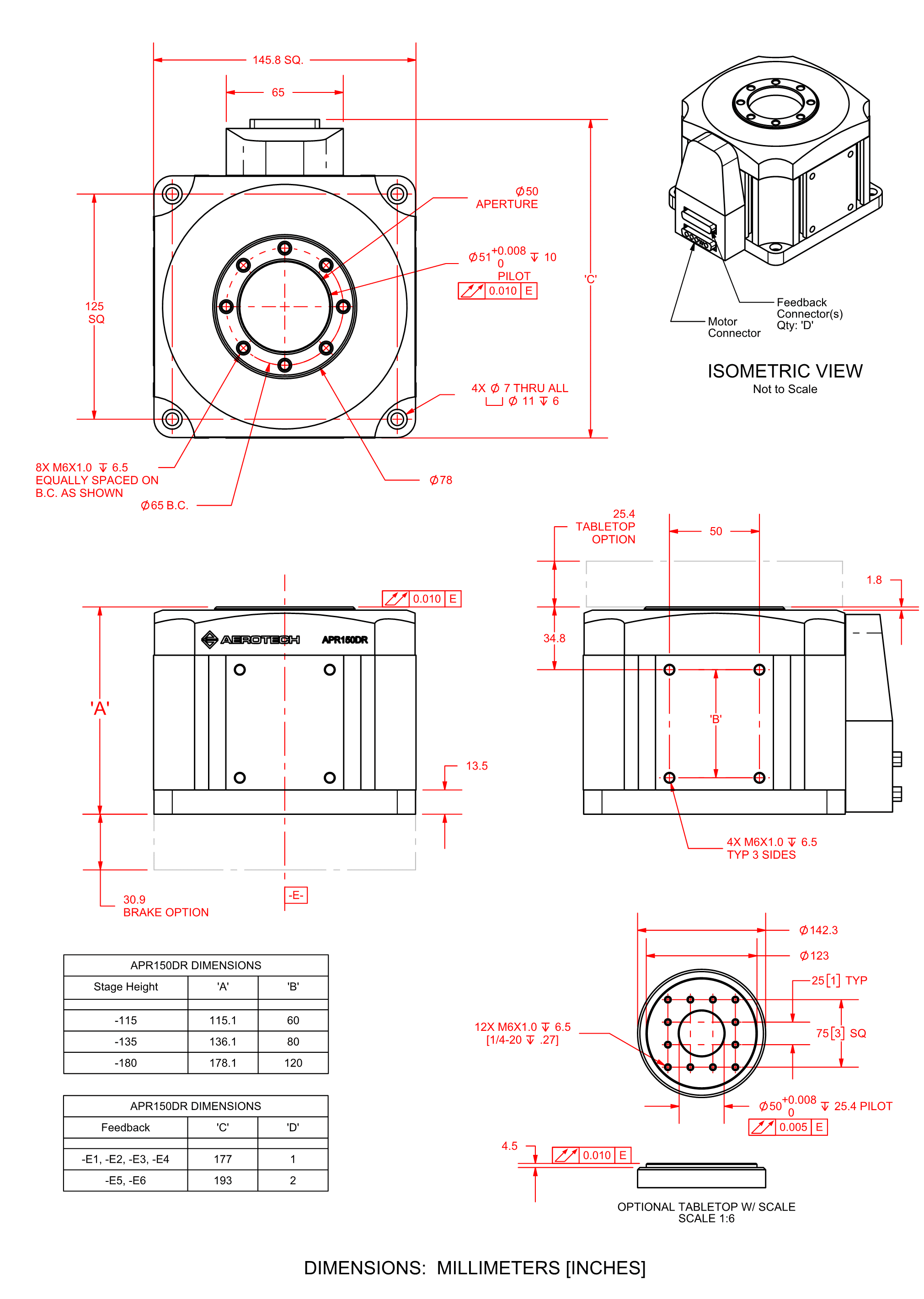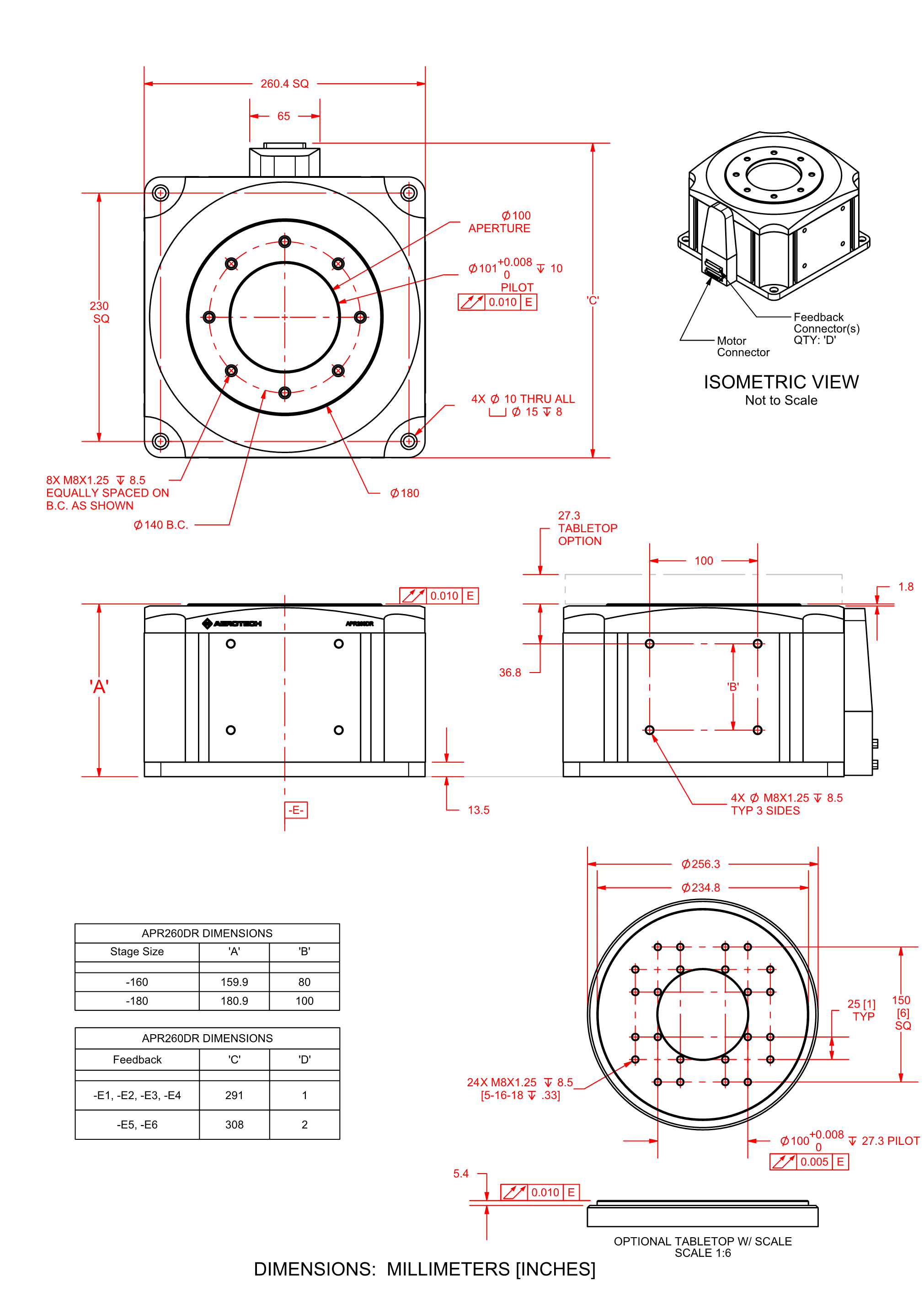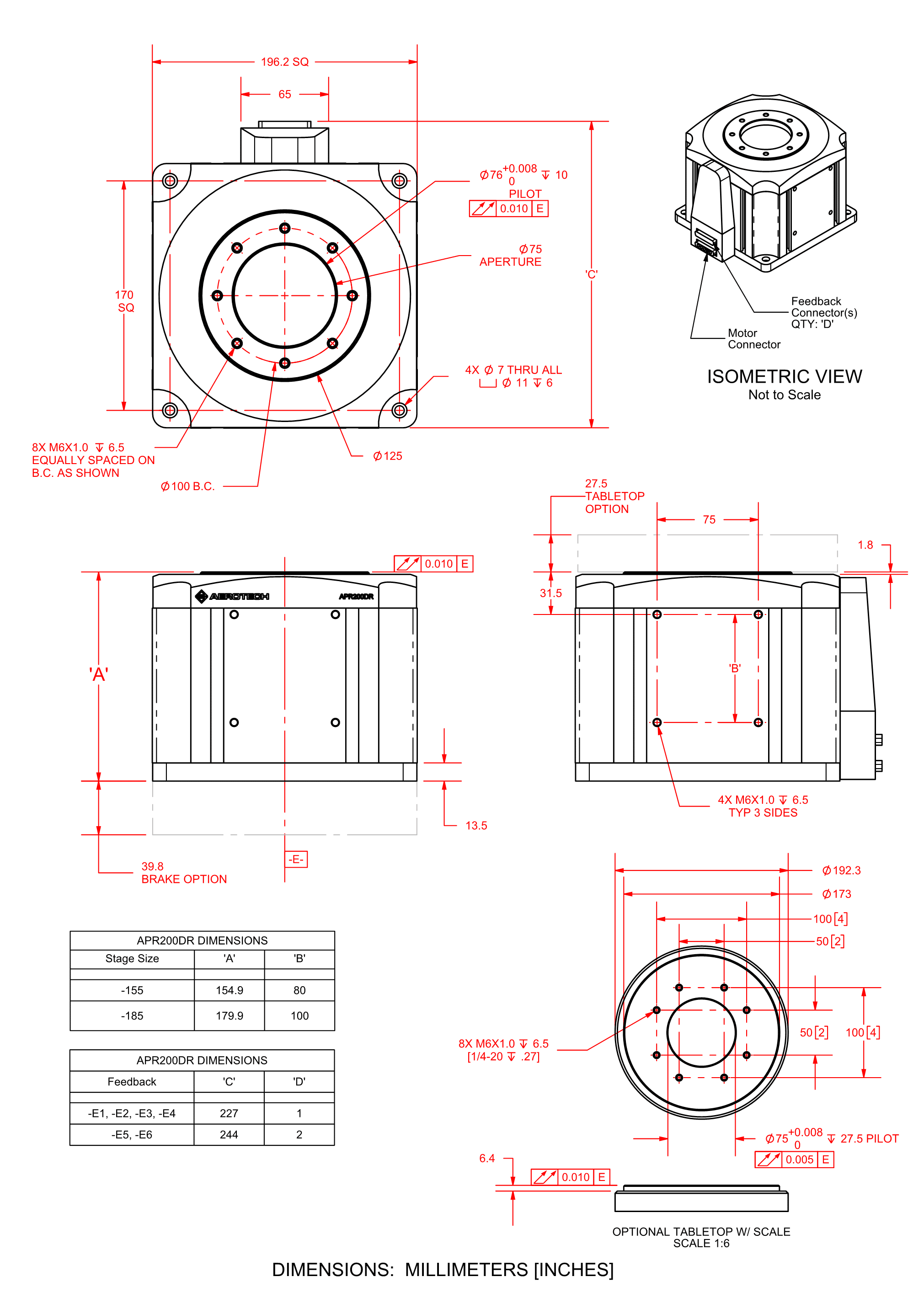 | -E6 | High-accuracy incremental encoder, Digital RS422, x10000 interpolation (APR150DR, APR200DR, APR260DR); x8000 interpolation (APR100DR) |